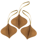 Verleihen Sie Ihrer Weihnachtsdekoration mit diesem Papier-Honigwaben-Zwiebel Anhänger in Caramel Braun eine verspielte, aber elegante Note. Das geometrische 3D-Honigwabendesign bringt Struktur und Charme auf Ihren Weihnachtsbaum, Kränze oder Girlanden.